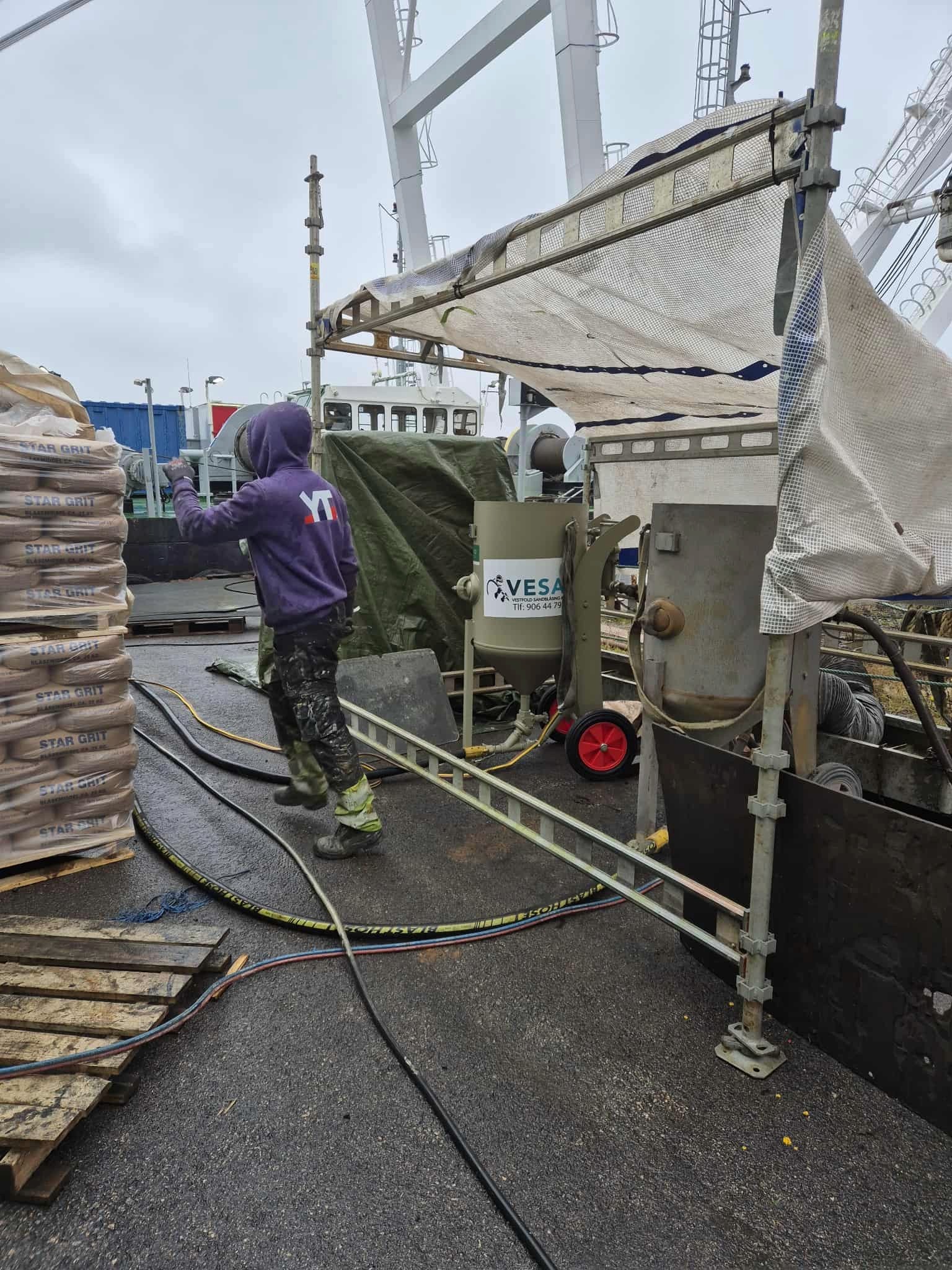 Sandblåsing og overflatebehandling av tank ved Jahrestranda Næringspark. Arbeidet utføres med fokus på kvalitet, sikkerhet og langvarig beskyttelse i krevende miljø.