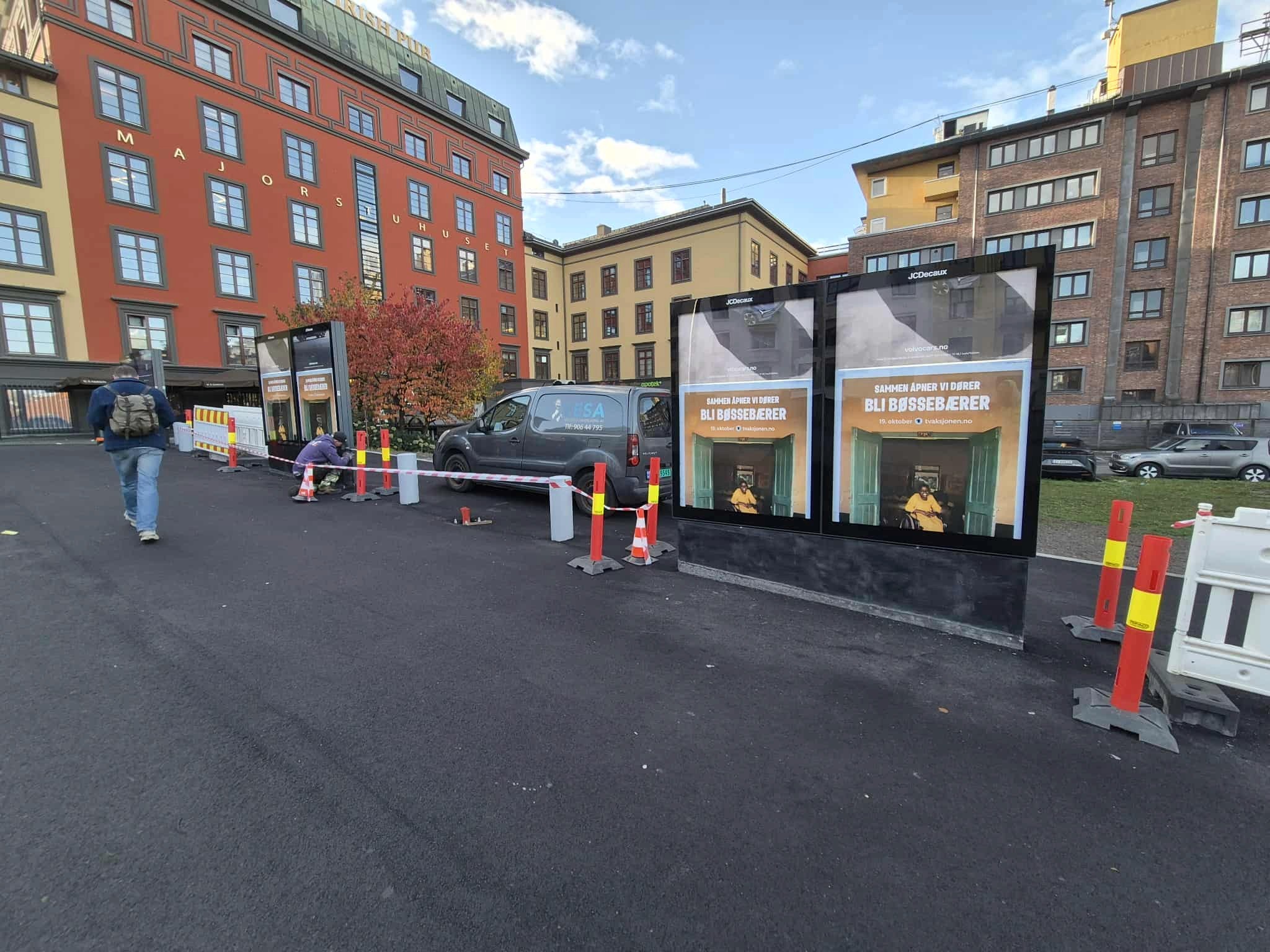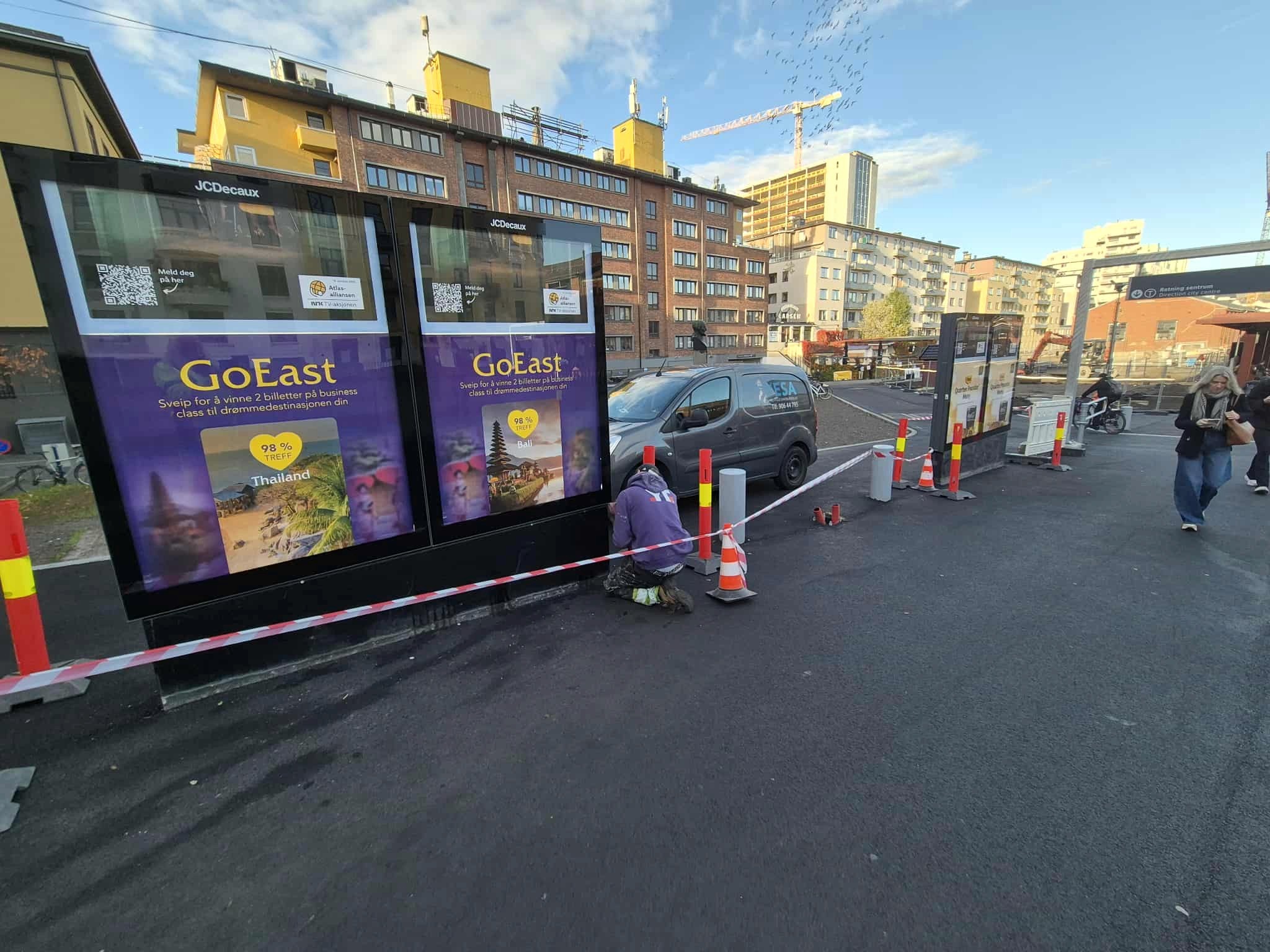Maling og oppgradering av reklameskur ved Majorstua stasjon. Utført med fokus på slitesterk finish og et ryddig, profesjonelt uttrykk i offentlig bymiljø.